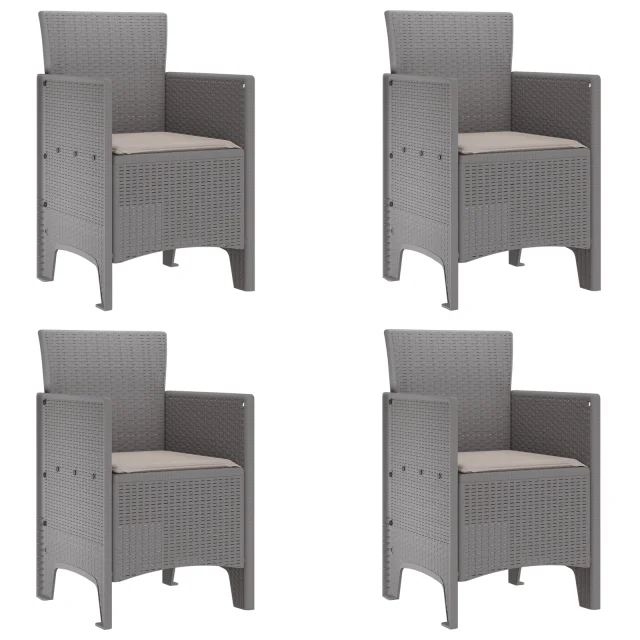 vidaXL vrtni stoli z blazinami 4 kosi svetlo siva poli ratan