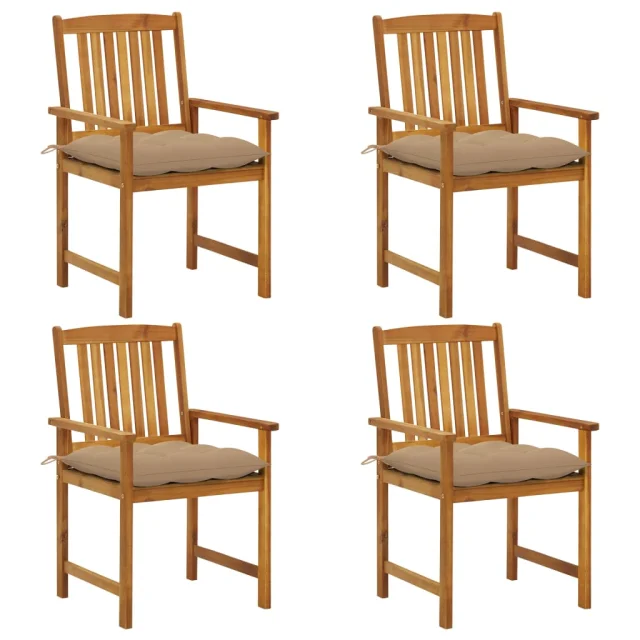Ti vrtni stoli so narejeni iz trdnega akacijevega lesa, zato so močni in stabilni. Blazine nudijo dodatno udobje. Vsaka blazina ima dva kompleta vrvic za dobro pritrditev na zunanji stol.