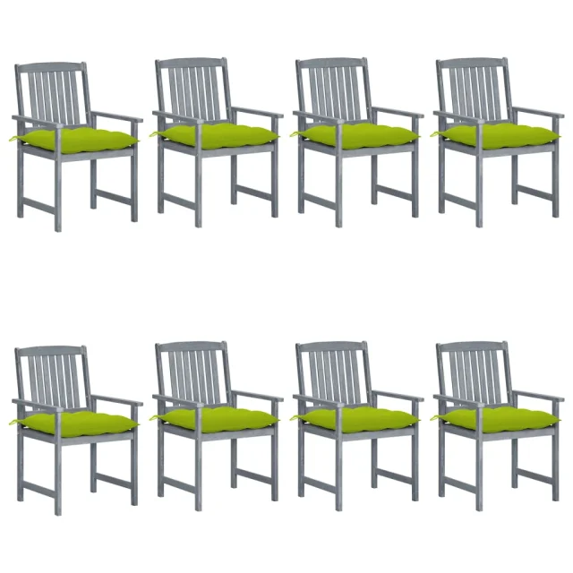 vidaXL Vrtni stoli z blazinami 8 kosov trden akacijev les sivi