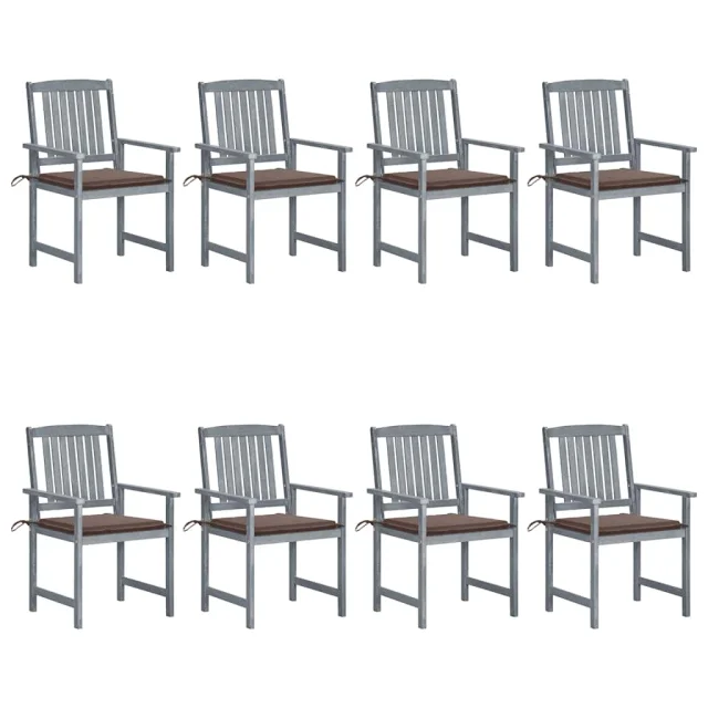 vidaXL Vrtni stoli z blazinami 8 kosov trden akacijev les sivi