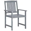 Ta komplet zunanjih stolov je izdelan iz trdnega akacijevega lesa z bledo sivim premazom. To je trden les z gostimi vzorci. Trden akacijev les je dovolj močan za prenašanje teže, poleg tega pa se tudi dobro spopada z obrabo in uporabo. Ta komplet lesenih stolov je stabilen, trpežen in vremensko odporen. Površina stola je preprosta za čiščenje z vlažno krpo. Priložene blazine nudijo dodatno udobje.