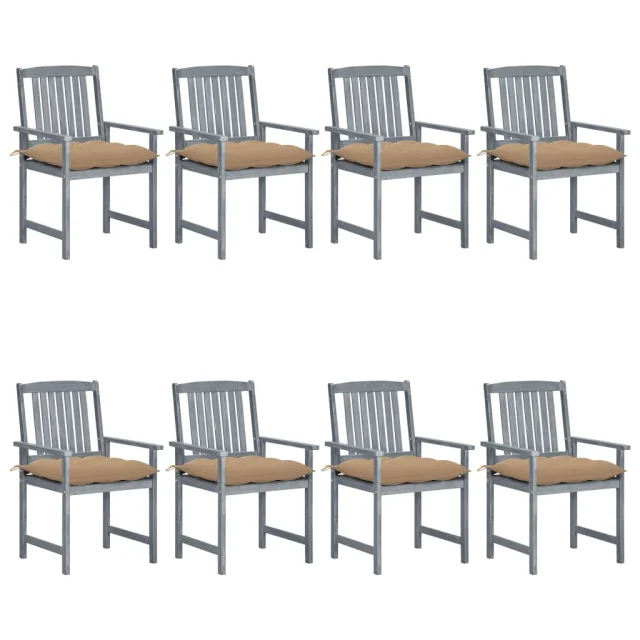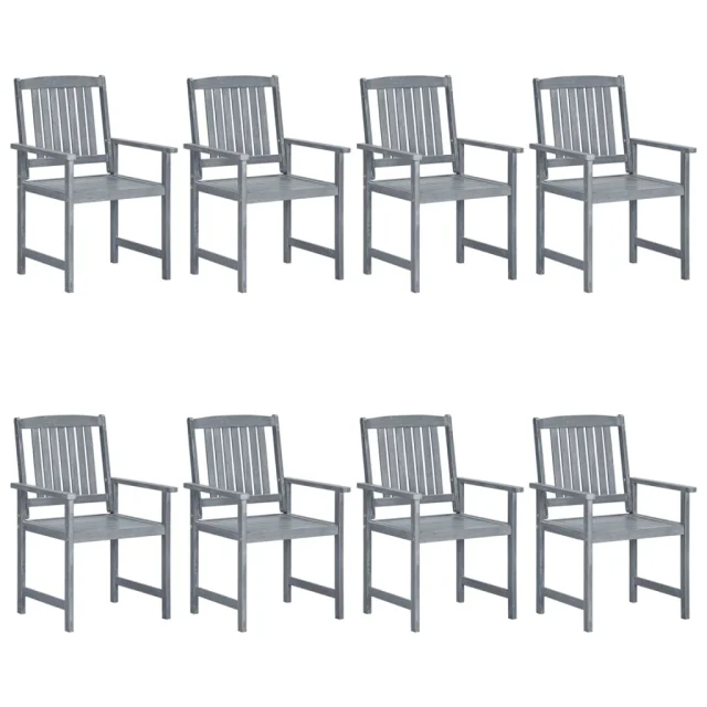Ta komplet zunanjih stolov je izdelan iz trdnega akacijevega lesa z bledo sivim premazom. To je trden les z gostimi vzorci. Trden akacijev les je dovolj močan za prenašanje teže, poleg tega pa se tudi dobro spopada z obrabo in uporabo. Ta komplet lesenih stolov je stabilen, trpežen in vremensko odporen. Površina stola je preprosta za čiščenje z vlažno krpo. Priložene blazine nudijo dodatno udobje.