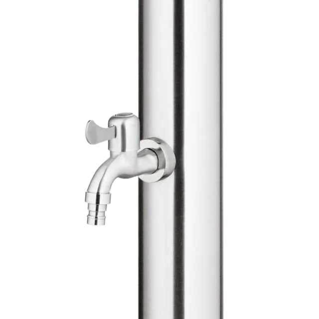 Vrtni tuš je izdelan iz nerjavečega jekla, zato je vremensko odporen. Sistem za tuširanje ima tuš glavo in pipo za umivanje nog, zato je primeren za vrtnarjenje, zalivanje in hitro tuširanje.