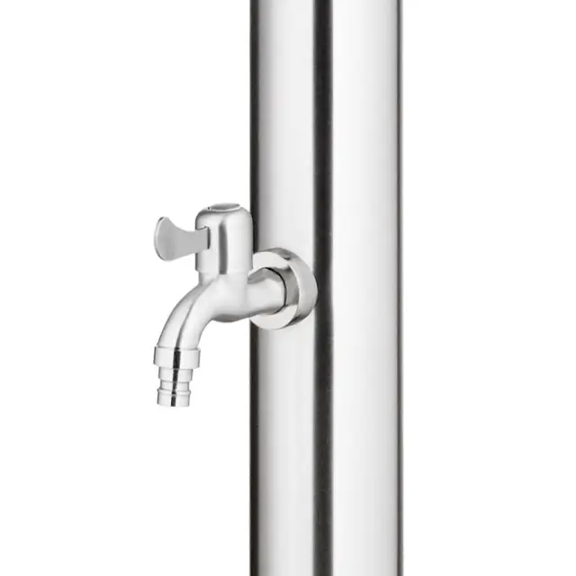 Ta vrtni tuš z modernim dizajnom bo odličen dodatek za vaš bazen in druge zunanje bivalne prostore. Vrtni tuš je izdelan iz nerjavečega jekla, zato je vremensko odporen. Sistem za tuširanje ima tuš glavo in pipo za umivanje nog, zato je primeren za vrtnarjenje, zalivanje in hitro tuširanje. Vzdržljiv in na korozijo odporen podstavek za tuš je izdelan iz vrhuskega WPC-ja ter ima okvir iz nerjavečega brušenega jekla, ki zagotavlja vzdržljivost za dolgoletno uporabo. Nudi najvišji nivo higiene, zato je popoln za uporabo na prostem. Zahvaljujoč trdnosti in vsestranskosti lahko ta podstavek za tuš služi tudi kot postavek za bazensko lestev. Potopite se v resnično sproščujoče tuširanje in uživajte v sodobnem stilu tega zunanjega tuš sistema!Barva osnove: SivaMaterial: Nerjaveče jeklo, WPCCelotna višina: 220 cmDimenzije podstavka: 110 x 62 x 5 cm (D x Š x D)Podstavek za 2 osebiPremer cevi: 7,6 cmPremer tuš glave: 15 cmGumb iz kroma in cinkaIzvrtane luknje za pritrditevPaket vsebuje plastične pripomočke za namestitev 3070793