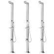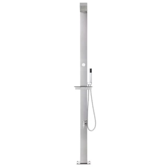 Ta vrtni tuš z modernim dizajnom bo odličen dodatek za vaš bazen in druge zunanje bivalne prostore. Zunanji tuš je izdelan iz nerjavečega jekla, zato je vremensko odporen. Sistem za tuširanje ima nadglavni tuš, ročni tuš in pipo za umivanje nog, primeren pa je za vrtnarjenje, zalivanje in hitro tuširanje. Dvojno pritrjena cev je gibka in zasnovana za ročni tuš. Opremljena je tudi s plastičnim držalom za ročni tuš in polico za preprosto obešanje cevi. Vzdržljiv in na korozijo odporen podstavek za tuš je izdelan iz vrhuskega WPC-ja ter ima okvir iz nerjavečega brušenega jekla, ki zagotavlja vzdržljivost za dolgoletno uporabo. Nudi najvišji nivo higiene, zato je popoln za uporabo na prostem. Zahvaljujoč trdnosti in vsestranskosti lahko ta podstavek za tuš služi tudi kot postavek za bazensko lestev. Potopite se v resnično sproščujoče tuširanje in uživajte v sodobnem stilu tega zunanjega tuš sistema!Barva podstavka: RjavaMaterial: Nerjaveče jeklo, WPCSkupna višina: 225 cmDolžina ročnega tuša: 1,5 mDimenzije podstavka: 80 x 62 x 5 cm (D x Š x D)Podstavek za 1 oseboNadglavni tuš s 25 šobamiABS gumbIzvrtane luknje za pritrditevPaket vsebuje plastične pripomočke za namestitev 3070777