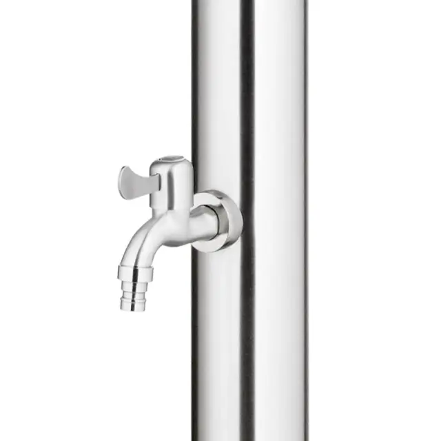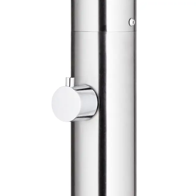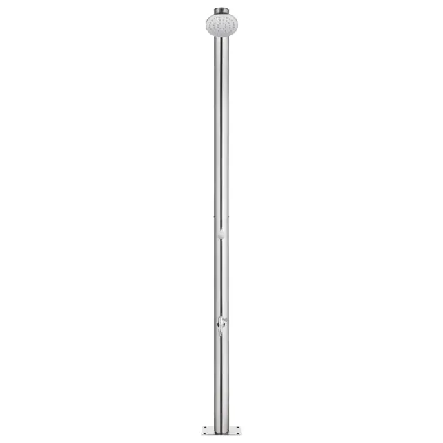 Ta vrtni tuš z modernim dizajnom bo odličen dodatek za vaš bazen in druge zunanje bivalne prostore. Vrtni tuš je izdelan iz nerjavečega jekla, zato je vremensko odporen. Sistem za tuširanje ima tuš glavo in pipo za umivanje nog, zato je primeren za vrtnarjenje, zalivanje in hitro tuširanje. Vzdržljiv in na korozijo odporen podstavek za tuš je izdelan iz vrhuskega WPC-ja ter ima okvir iz nerjavečega brušenega jekla, ki zagotavlja vzdržljivost za dolgoletno uporabo. Nudi najvišji nivo higiene, zato je popoln za uporabo na prostem. Zahvaljujoč trdnosti in vsestranskosti lahko ta podstavek za tuš služi tudi kot postavek za bazensko lestev. Potopite se v resnično sproščujoče tuširanje in uživajte v sodobnem stilu tega zunanjega tuš sistema!Barva podstavka: RjavaMaterial: Nerjaveče jeklo, WPCCelotna višina: 220 cmDimenzije podstavka: 80 x 62 x 5 cm (D x Š x D)Podstavek za 1 oseboPremer cevi: 7,6 cmPremer tuš glave: 15 cmGumb iz kroma in cinkaIzvrtane luknje za pritrditevPaket vsebuje plastične pripomočke za namestitev 3070778