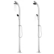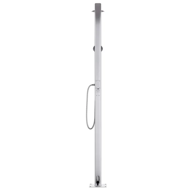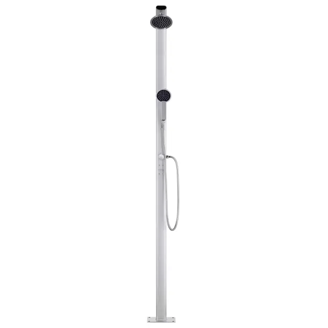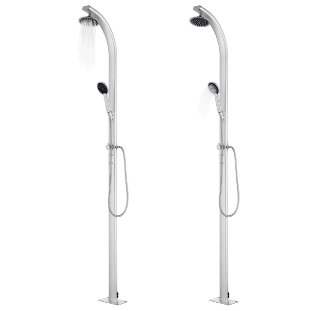 Ta vrtni tuš je izdelan iz aluminija, zato je vremensko odporen. Tuš sistem ima tuš glavo in ročni tuš za potrebe vrtnarjenja, zalivanja in hitrega tuširanja. Ročni tuš ima fleksibilno cev z dvojnim zaklepom z dolžino 1,5 m. Ima tudi držalo za ročni tuš, ki se lahko uporablja za odlaganje brisače.