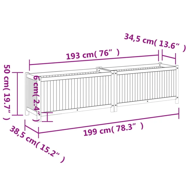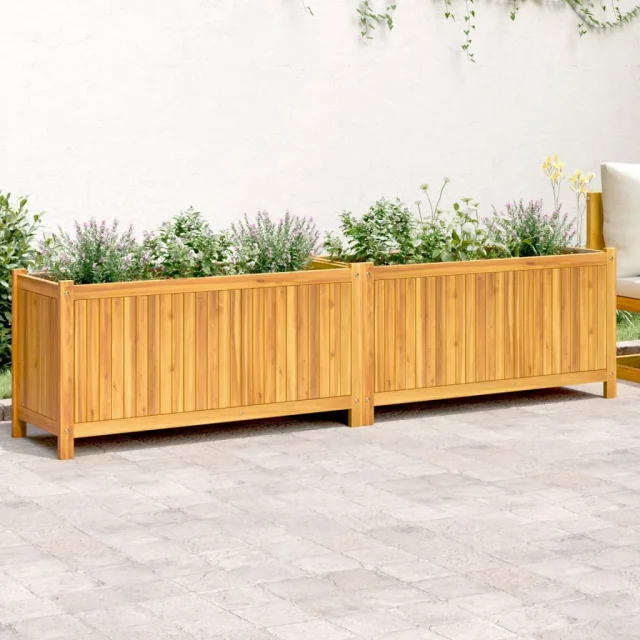vidaXL Vrtno cvetlično korito s podlogo 199x38,5x50 cm akacijev les
