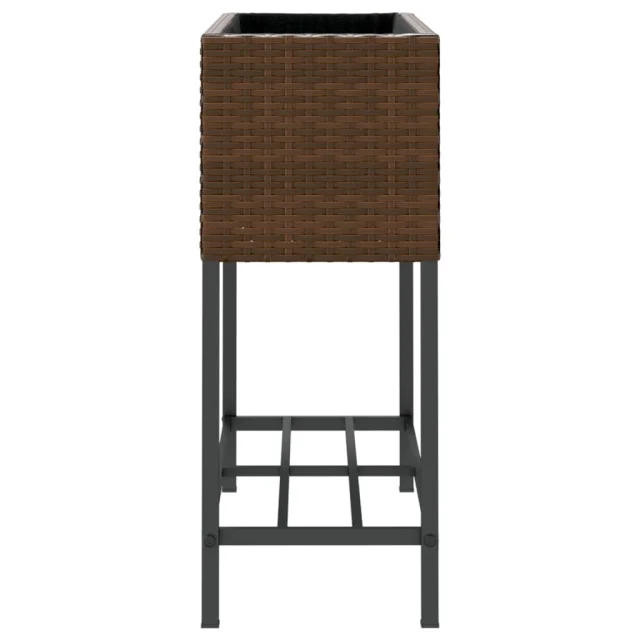 vidaXL Vrtno cvetlično korito s polico rjav poli ratan