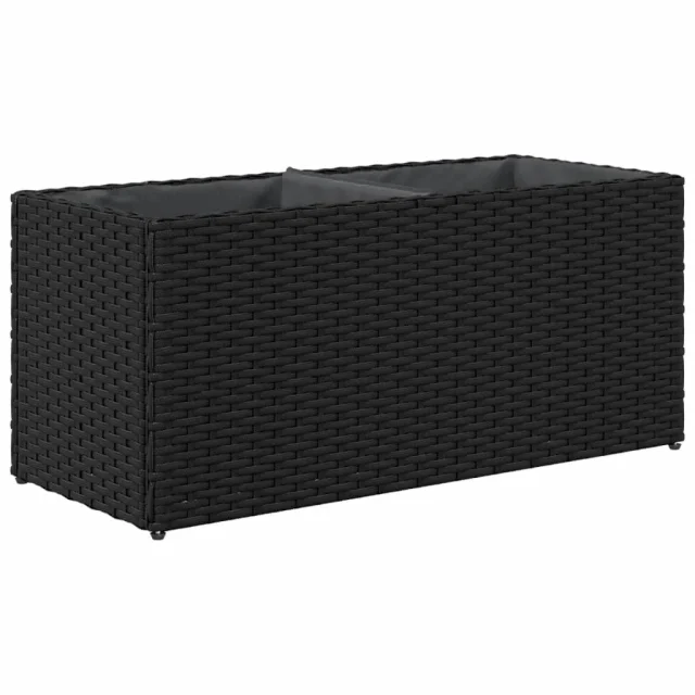 vidaXL Vrtno cvetlično korito z 2 loncema črna 72x30x32 cm poli ratan