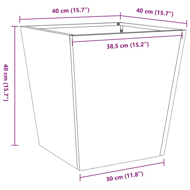 Te vrtne grede so odlična izbira za shranjevanje vaših najljubših rastlin ali cvetja, ki jih lahko dodate na vaše vrtove, balkone ali terase kot dekoracijo.Robusten in trpežen material: Vrtni sadilnik je izdelan iz jekla in je odporen na rjo ter trpežen za dolgotrajno uporabo na prostem. Zagotavlja tudi stabilnost in preprečuje prevračanje.Veliko prostora: Vrtna greda je dovolj globoka in široka za veliko količino zemlje, zato ponuja dovolj prostora za vaše rastline, zelenjavo, zelišča in rože.Vsestranskost: Vrtna greda brez drenažnih lukenj lahko stoji na kateri koli površini brez strahu pred poplavljanjem in v njem lahko hranite svoje najljubše rastline ali rože za okrasitev svojega prostora. Na dnu lahko naredite tudi luknjo za boljše odvajanje vode.Zaščita pred pleveli in škodljivci: Ta sadilnik dvigne vaše rastline in jih zaščiti pred plevelom, škodljivci in žuželkami, ki živijo na tleh.Široka uporaba: Ta vrtna greda je odlična izbira za ljubitelje DIY za okrasitev vaših vrtov in vseh zunanjih bivalnih prostorov.Material: Pocinkano jekloDimenzije: 40 x 40 x 40 cm (D x Š x V)Velikost odprtine: 40 x 40 cm (D x Š)Velikost dna: 30 x 30 cm (D x Š)Z dnomPotrebno sestavljanje: DaPaket vsebuje:2 x Cvetlično korito 851063
