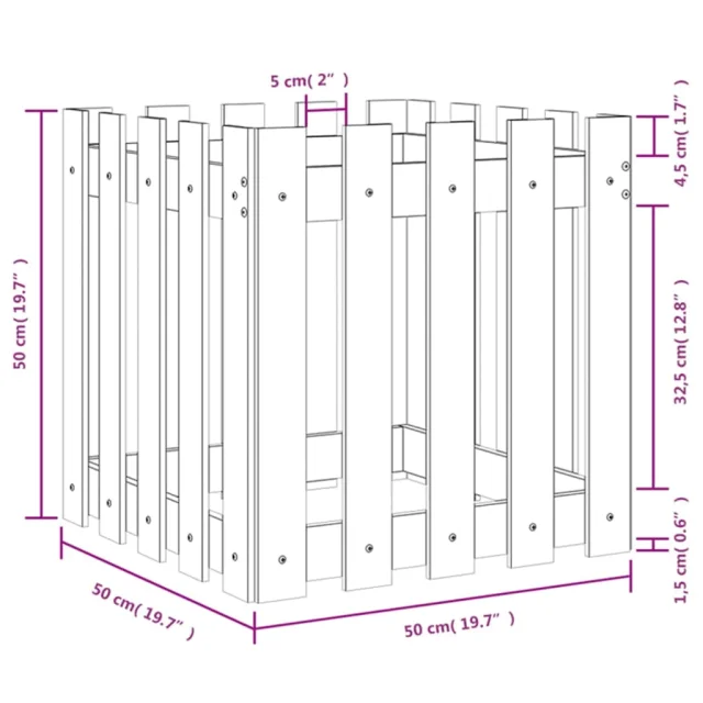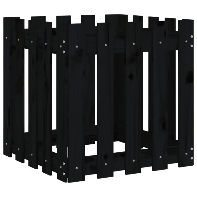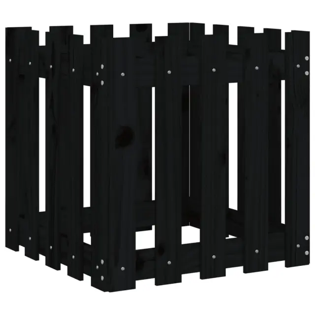 vidaXL Vrtno korito z ograjico črno 50x50x50 cm trdna borovina