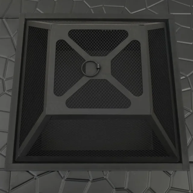 Kurišče za teraso iz jekla odlično vpija in oddaja toploto. Skozi mrežasti pokrov, ki obdaja ogenj ter preprečuje odletavanje iskric in umazanije iz ognjišča lahko opazujete goreči ogenj. Na vrhu mrežastega pokrova je tudi priročen obroček, s katerim ga lahko enostavno prenašate. Priložena kovinska grebljica je namenjena odstranjevanju mrežastega pokrova in prestavljanju polen. To ognjišče z veliko posodo se ne uporablja le za kurjenje ognja ampak tudi kot posoda za hladne pijače in ledene kocke.