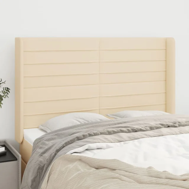 vidaXL Vzglavje z ušesi krem 147x16x118/128 cm blago
