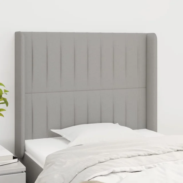 vidaXL Vzglavje z ušesi svetlo sivo 103x16x118/128 cm blago