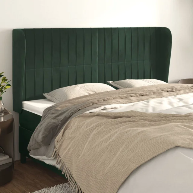 vidaXL Vzglavje z ušesi temno zeleno 183x23x118/128 cm žamet