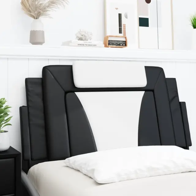 Ta blazina z elegantno zasnovo daje posteljnemu okvirju popoln videz in se prilega vsaki spalnici. Trpežno umetno usnje: Vrhunsko umetno usnje je zelo vzdržljiv material. Je odporno na madeže, zato ga lahko preprosto čistite z vlažno krpo. Gladka površina mu prav tako daje razkošen videz in lepoto pravega usnja. Odlična podpora: Vzglavna stranica je napolnjena s peno za izjemno mehkobo in optimalno udobje ter zagotavlja odlično podporo hrbtu, ko sedite v postelji in berete ali gledate televizijo. Priročna zasnova: Vzglavna stranica ima zadrgo za preprosto namestitev, pripenjala na zadnji strani pa se lahko uporabijo za pritrditev LED lučk. Vsestranska namestitev: S priloženimi trakovi lahko blazino obesite na steno, da se prilega vsakemu slogu postelje. Uporabite jo lahko tudi z vzglavjem ukrivljenega posteljnega okvirja v naši trgovini, samo odstranite originalno prevleko z vzglavja in ga prekrijte s to blazino ter tako ustvarite udobno vzglavje! Klasična lepota: Zasnova mini vzglavnika prispeva k praktičnosti in klasični lepoti oblazinjenega vzglavnika. Dobro je vedeti:Paket vsebuje samo vzglavno stranico. Posteljni okvir in vzmetnica nista priložena. V naši trgovini si lahko ogledate ustrezne okvirje in vzmetnice.Barva: Črna in belaMaterial: Umetno usnje (75 % polivinilklorid, 5 % bombaž, 20 % poliester)Material polnila: PenaDimenzije: 100 x 3 x 49 cm (D x Š x V)Širina primerne vzmetnice: 100 cmPotrebno sestavljanje: Da 374779