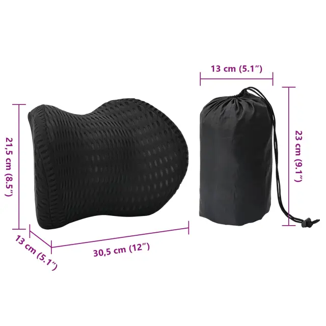 vidaXL Vzglavnik z blazino Prilagodljiva Črna 31 x 23 x 14 cm 4D Mreža