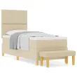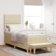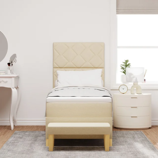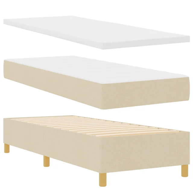 Ta vzmetna postelja prinaša udobje in stil v tvojo spalnico. S svojim kremnim blagom in močnim lesenim okvirjem ni le postelja - je stilski dodatek, ki prinaša kanček elegance in miru v vsak prostor. Udobna je dovolj za eno odraslo osebo, da se lahko dobro naspi.