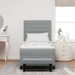 Ta vzmetna postelja se ponaša s stilom in praktičnostjo, kar jo naredi za odlično izbiro za vsako spalnico. Njena hladna siva zasnova in trdi črni leseni nogi ji dajejo sodoben videz, ki je prijeten za oko in udoben, zagotavlja dober nočni spanec in obogati vaš prostor.