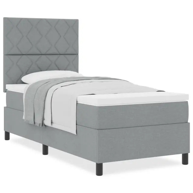 vidaXL Vzmetna postelja z vzmetnico Svetlo siva 100x200 cm Tkanina