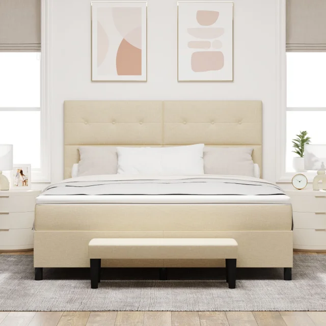 Ta vzmetnica postelja združuje stil in funkcionalnost, kar jo naredi super izbira za vsako odraslo spalnico. Čudovit kremni zaključek in trdne borove noge ji dajo sodoben pridih, kar ti omogoča dober spanec in hkrati doda kanček stila tvojemu prostoru.