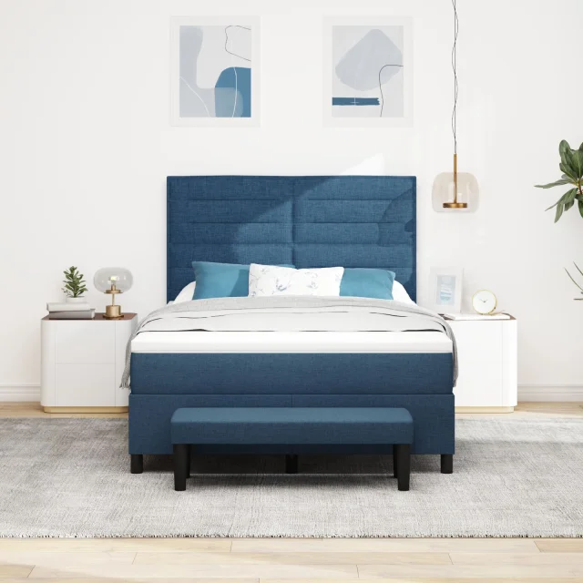 Osvetli svojo spalnico s to vzmetnico s podlago, ki združuje sodoben stil s praktičnimi rešitvami. Čudovit temno modri zaključek in trdne črne noge ustvarjajo šik vzdušje, ki oživi dekor in ti omogoči dober spanec.