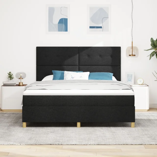 VidaXL vzmetnica s posteljo je šik del za tvojo spalnico, zasnovan za udobje in stil. Pokrita v črni tkanini, spojila moderna videza z vsakodnevno uporabnostjo, kar jo naredi odličen osrednji del za vsak prostor za spanje.