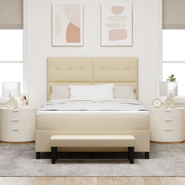 Ta vzmetnica je vse o slogu in funkcionalnosti - odlična izbira za vsako odraslo spalnico. Eleganten kremni videz in naravne lesene noge dodajo moderni prijem, ki je topel in eleganten, kar vam bo omogočilo dobro noč spanja in popestrilo vašo sobo.