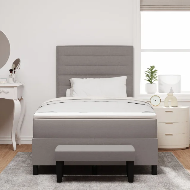 Ta vzmetnica je odlična mešanica sloga in funkcionalnosti, kar jo naredi super izbira za vsako odraslo spalnico. Pametna taupe obdelava s sivimi nogami ji daje eleganten pridih, obenem pa nudita udobje, ki zagotavlja dober nočni spanec in obogati vašo dekoracijo.