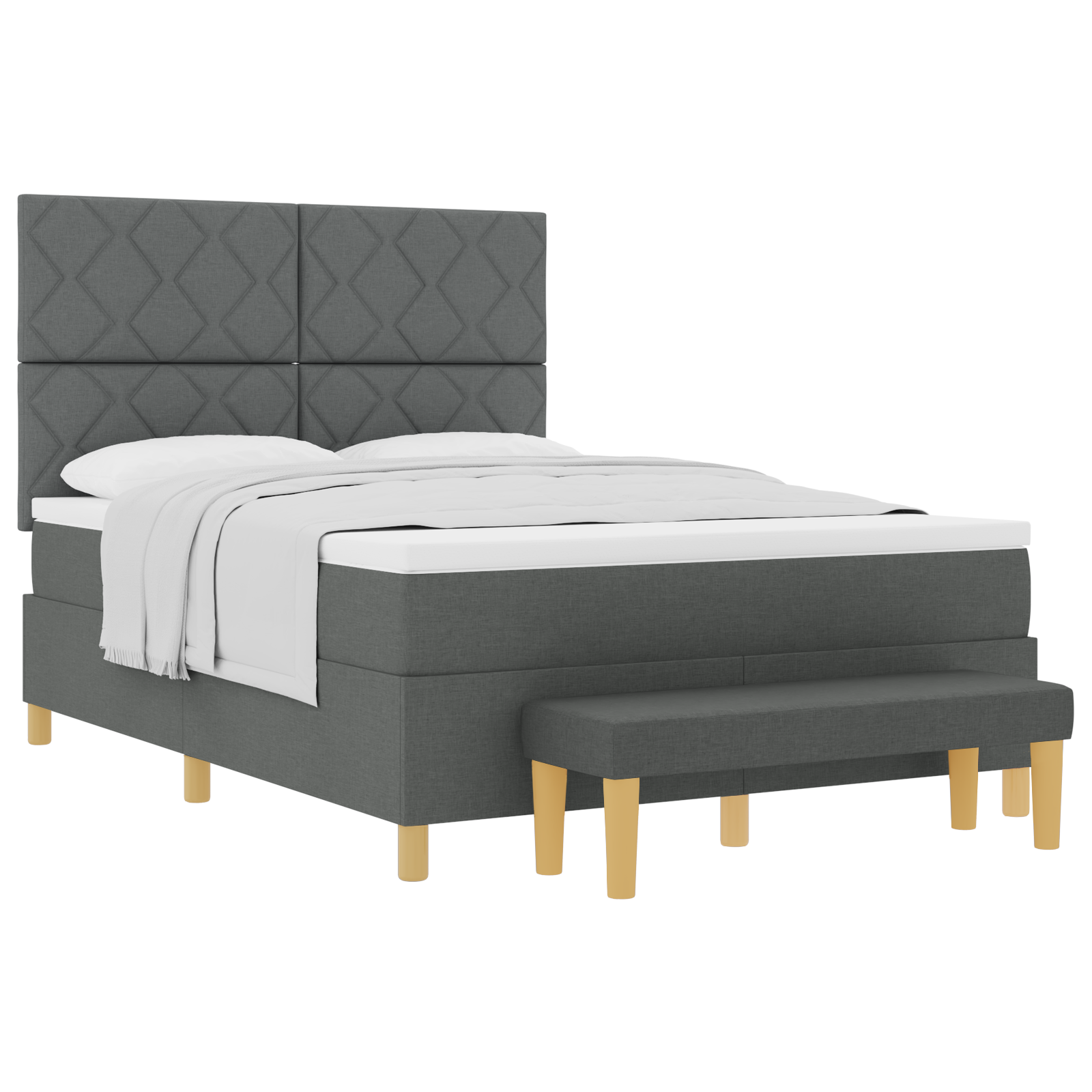 Ta vzmetnica je resnično mešanica stila in udobja, kar jo naredi za odlično izbiro za tvojo spalnico ali sobo za goste. Ovita v moderno temno sivo tkanino in trdno leseno konstrukcijo, prinese šarm v vsak prostor in ponudi prijetno zavetje za do dve osebi.