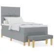 Ta vzmetnica s škatlo združuje udobje in slog, kar jo naredi odličen dodatek za vsakogar, ki želi popestriti svojo spalnico. S svojo trendi svetlo sivo tkanino in trdim lesnim okvirjem ni le postelja, temveč tudi osrednji kos, ki v sobo prinaša umirjen občutek in udobno prilega enemu odraslemu.
