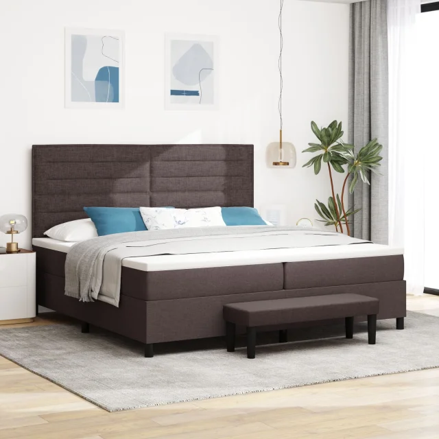 Ta vzmetnica s škatlo združuje eleganco in praktičnost, kar jo naredi odlično izbiro za vsako spalnico. Temno siva končna obdelava in trdne noge ji dajejo moderen videz, ki zagotavlja čudovit nočni spanec in izboljšuje slog vaše sobe.