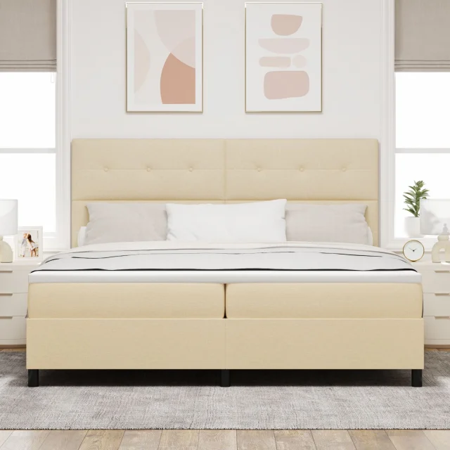 Ta vzmetnica s škatlo ponuja eleganco in praktičnost, kar jo dela super izbiro za vaše spalnice. S kremasto tkanino in trajnimi kvadratnimi nogami bo izboljšala izgled vaše sobe in poskrbela za udobje.