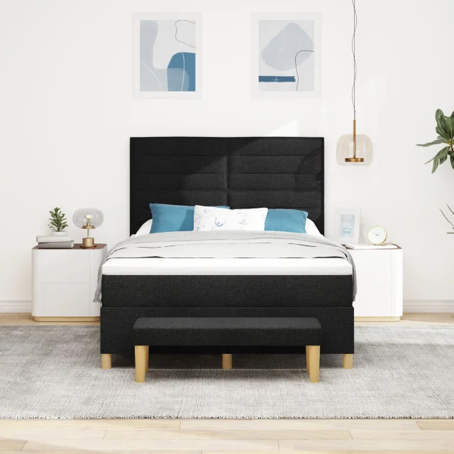 Ta vzmetnica združuje udobje in stil, idealna za vsakogar, ki hoče popestriti svojo spalnico. Sodobno črno oblazinjenje in trden lesen okvir sta odlična kombinacija za udobje in estetiko.