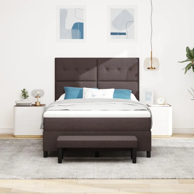 Ta vzmetnica povezuje privlačnost in praktičnost, kar jo dela idealno za vsako odraslo spalnico. Temno rjava barva in močne noge ji dajo moderno, a prijetno vzdušje ter ponujajo udobno posteljo in izboljšajo izgled vaše sobe.
