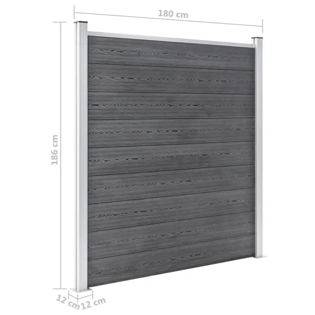 vidaXL WPC ograjni paneli 4 kvadratni + 1 poševni 792x186 cm sivi