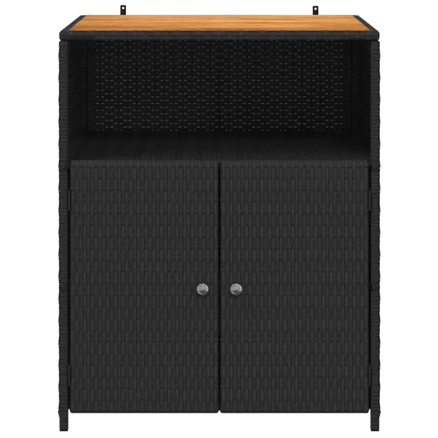 • Elementi iz poli ratana: Z vključitvijo poli ratana za police in vrata, kabinet ponudi brezhibno združitev teksture in trdnosti. Ta material daje zapleten dizajn, ki je prav tako praktičen za zunanjo uporabo.