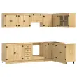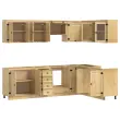 Ta moderna omara ponuja vrhunsko kombinacijo elegantnega dizajna in funkcionalnosti. Izdelana je večinoma iz trdnega borovega lesa, kar ji daje naraven in topel videz, ki se odlično prilega v različne notranje prostore. S svojo preprosto pravokotno obliko in minimalističnim pristopom je idealna za shranjevanje in razstavljanje dekoracij ali jedilnega pribora, ter zadostuje tako praktičnim potrebam kot estetskemu videzu.