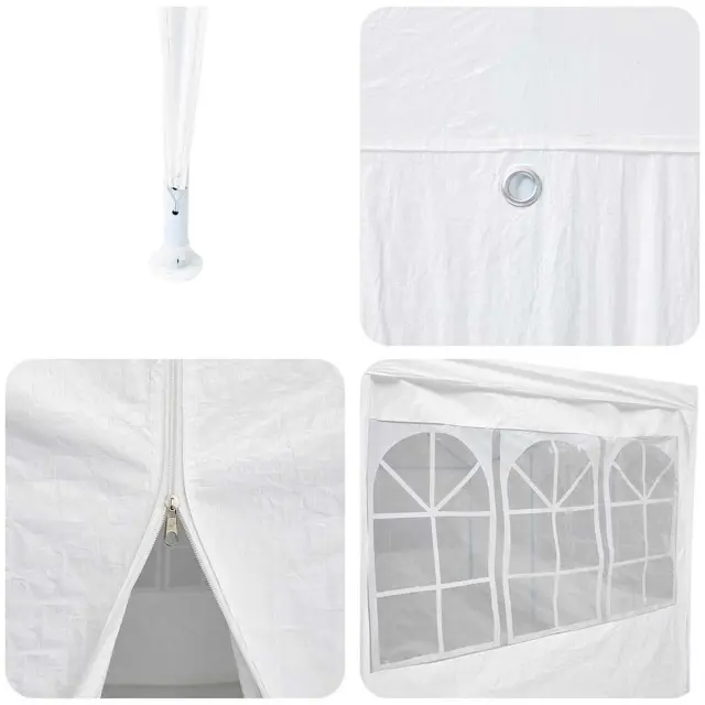 • Trpežen polyester in jeklo: Ta šotor za zabave je narejen iz močnega poliestra in jekla. Tkanina je zaščitena pred UV žarki, kar nudi solidno zaščito pred škodljivimi žarki, a hkrati izgleda super. Jekleni okvir poskrbi za stabilnost in moč, kar šotor drži na varnem med vsemi vrstami zunanjih dogodkov. Prašno prevlečen zaključek se bori proti koroziji, tako da tvoj šotor traja dlje.