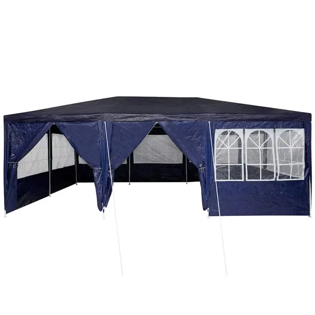 • Trpežen polyester in jeklo: Ta šotor za zabave je narejen iz močnega poliestra in jekla. Tkanina je zaščitena pred UV žarki, kar nudi solidno zaščito pred škodljivimi žarki, a hkrati izgleda super. Jekleni okvir poskrbi za stabilnost in moč, kar šotor drži na varnem med vsemi vrstami zunanjih dogodkov. Prašno prevlečen zaključek se bori proti koroziji, tako da tvoj šotor traja dlje.