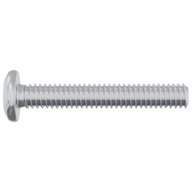 Ta kovinska zaklepna vijaka ima splošni vrh in je narejena za varne pritrdilne aplikacije, ki potrebujejo zanesljive navoje in trdnost. Njena sijoča srebrna površina in enostavna zasnova jo delata primerno za različne naloge, bodisi pri praktičnih bodisi dekorativnih projektih.