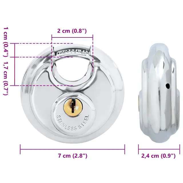 Te trpežne diskus ključavnice s ključi so pametna izbira za povečanje varnosti doma, v pisarni ali na prostem. Izdelane so iz nerjavečega jekla in železa, kar pomeni, da kombinirajo moč in estetski videz, kar je odlična izbira za vsak prostor. S svojim elegantnim srebrnim zaključkom in okroglo obliko ponujajo sodoben stil, ki se brez težav ujema s katerimkoli okoljem in zagotavlja varnost za dragocenosti.