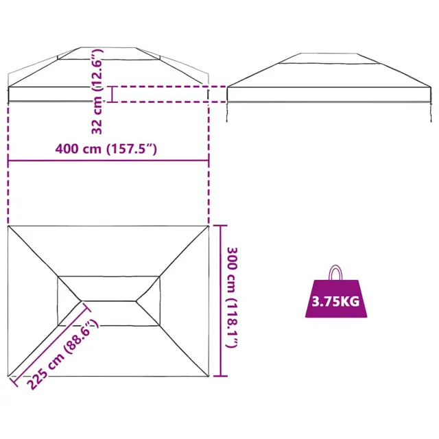 • Enostavna namestitev Dostavljen kot cela enota, zamenjava pokrova za paviljon poenostavi postopek brez dodatne montaže. Ta izdelek olajša nadgradnjo vašega obstoječega nadstreška, kar izboljšuje udobje za vse ravni spretnosti.
