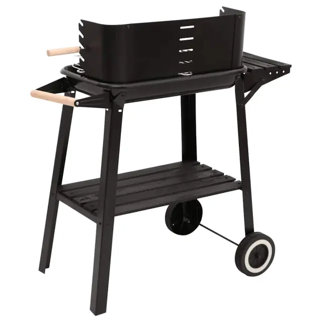 vidaXL Žar na oglje s kolesi iz črnega jekla