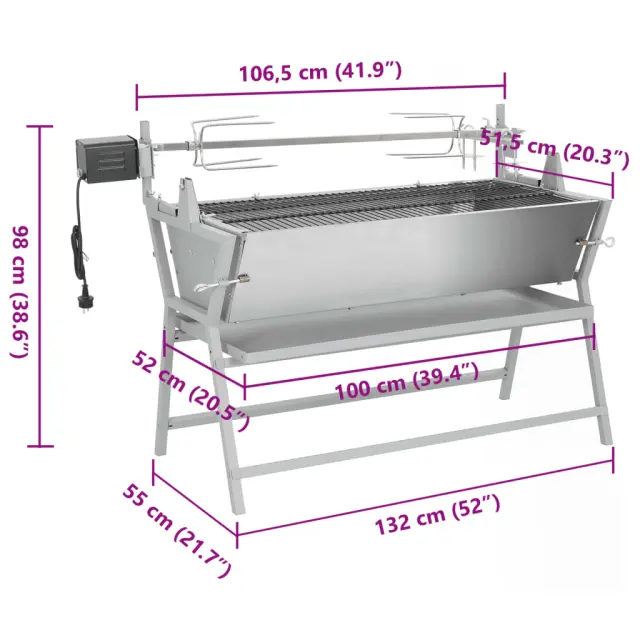 vidaXL Žar z vrtljivim ražnjem železo in nerjaveče jeko