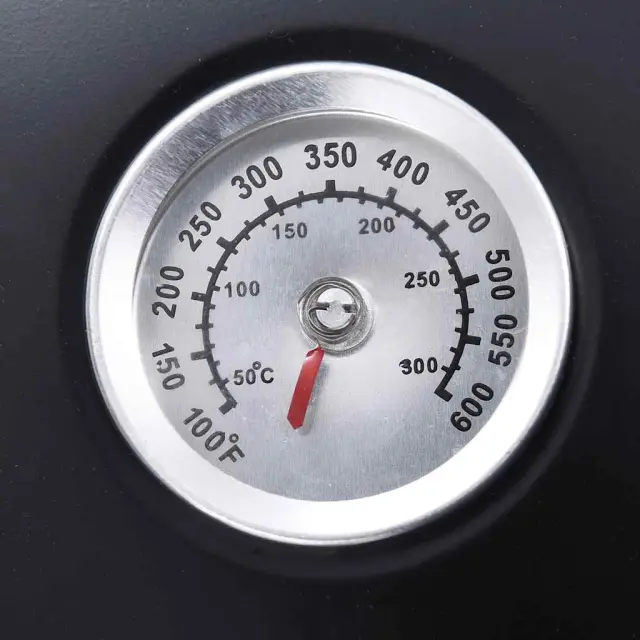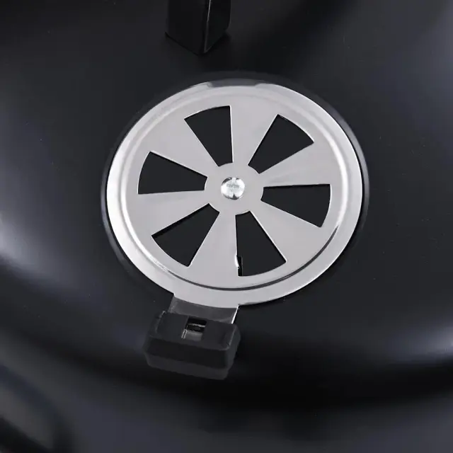 Termostat na pokrovu prikazuje temperaturo, ki jo lahko preprosto uravnavate s stranskimi vrati in pokrovom. Rešetka za oglje dviguje oglje, da zrak lahko kroži bolj učinkovito. Trikotno oblikovane noge zagotavljajo dodatno stabilnost. Po uporabi lahko žar razstavite na dele za enostavno prenašanje in shranjevanje. Prosimo upoštevajte: Prepričajte se, da žar na oglje uporabljate na ravni, stabilni površini.