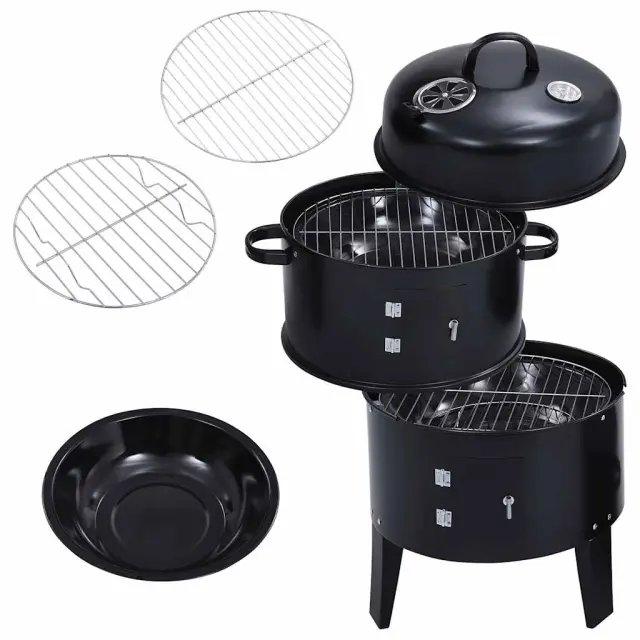 Z našim 3 v 1 žarom za dimljenje na oglje lahko pečete, kuhate in dimite. Žar je idealen za dogodke na prostem, kot so zabave, kresovi, družinski pikniki ali kampiranje.