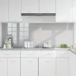 • Zasnova iz kaljenega stekla: Ta obloga je narejena iz kakovostnega kaljenega stekla, znanega po svoji vzdržljivosti. Steklo daje sodoben izgled, ki lepo dopolni vsako kuhinjo. Njena čista, jasna površina dodaja pridih sofisticiranosti in je primerna za različne oblikovalske sloge.