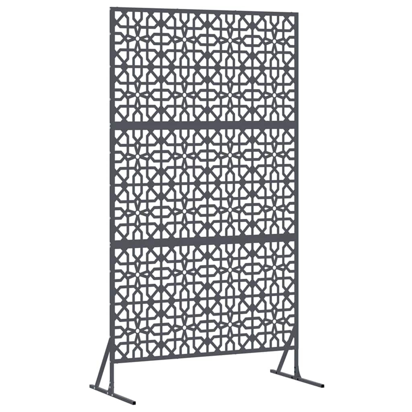 Ta zaslon za zasebnost v vrtu je lepa in praktična izbira za vsak zunanji prostor. Ima moden izgled, ki se ponaša s preprostostjo in čistimi linijami, kar ga naredi popolnega za sodobne vrtove in terase. Ta zaslon nudi občutek zasebnosti in hkrati osveži izgled tvojega zunanjega prostora. Njegova jeklena konstrukcija prinaša vzdržljivost in eleganten izgled, kar ga dela primernega za različne zunanje pogoje.